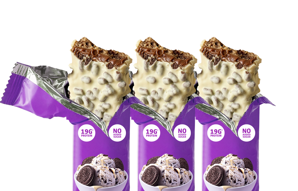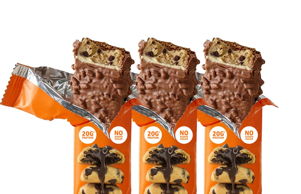 Three indulgent options: Chocolate Caramel Crisp features slow-dripping caramel layered between soft dough and a crispy chocolate shell. Chocolate Chip Cookie Dough tastes like raiding the mixing bowl – soft-baked dough loaded with chocolate chips. White Chocolate Cookies & Cream delivers velvety white chocolate studded with crunchy cookie pieces. All three pack 19-20g of protein, no added sugar, and zero chalky bite.