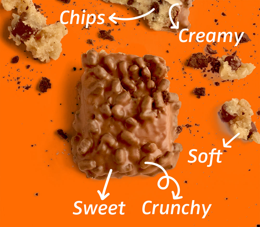 Gooey, crispy, soft. Tri-layer texture in every bar.